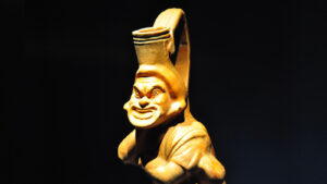 Aigai’de ortaya çıkan maskeli oyuncu tasvirli 1800 yıllık vazo sergide